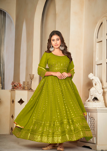 Elevate your ethnic wardrobe with this stunning Anarkali suit, crafted from premium georgette fabric that...