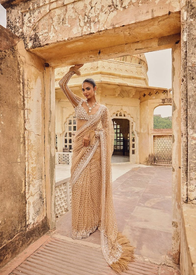 Experience refined elegance with this cream embroidered net lehenga choli, featuring exquisite floral embroidery that...