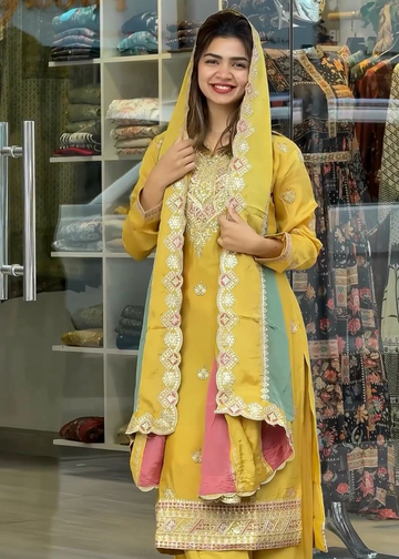 Yellow Embroidered Palazzo Suit with Zari and Sequin Detailing