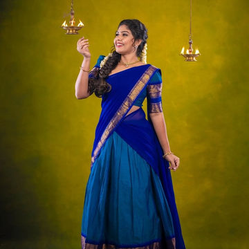 Royal Blue Silk Lehenga Choli with Golden Zari Border and Dupatta
