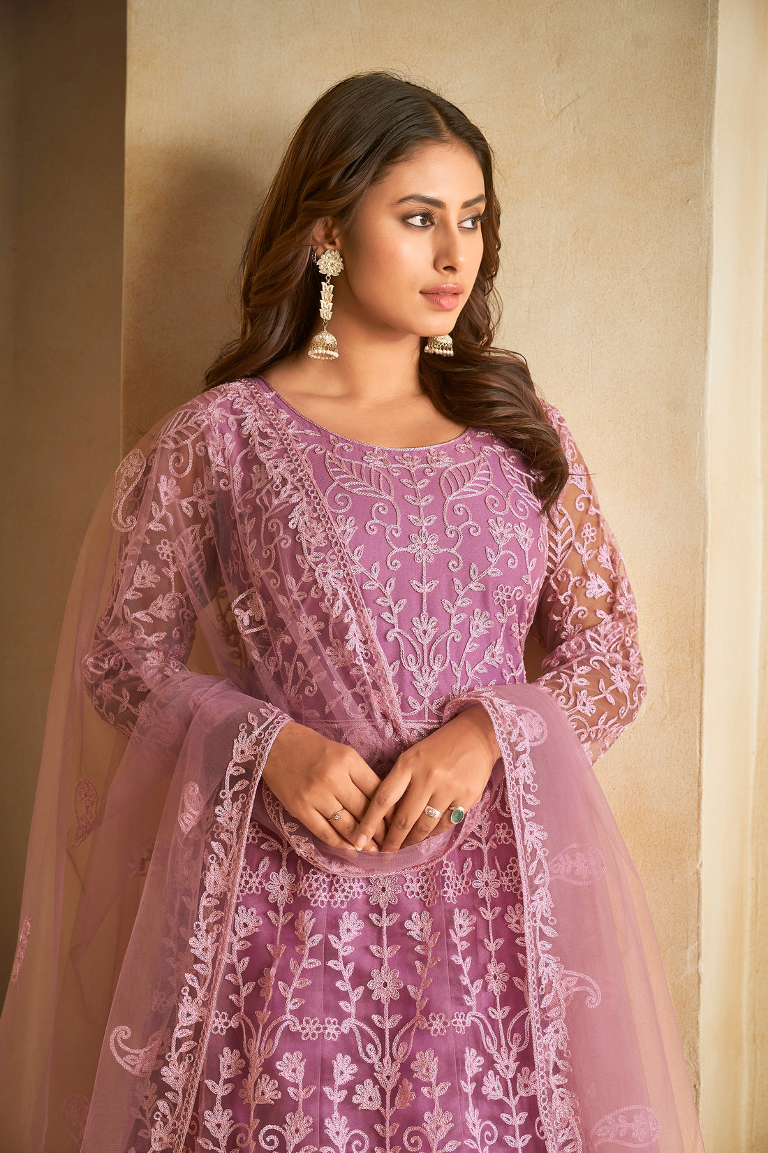 Purple & White Embroidered Anarkali Suit Look