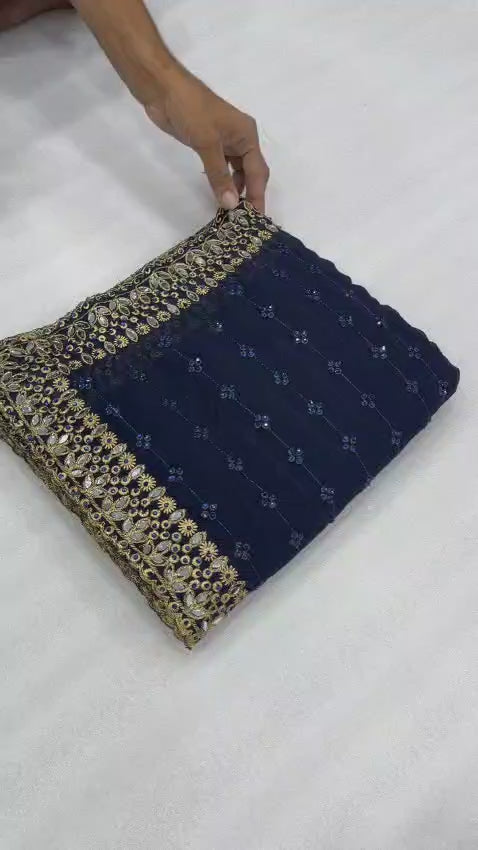 Step into the spotlight with this Ananya Pandey–inspired Bollywood blockbuster saree, crafted to deliver pure glamour and premium appeal. Designed in heavy-quality faux georgette, the saree features rich embroidery with detailed zari work on the pallu, creating a striking festive and party-ready look.