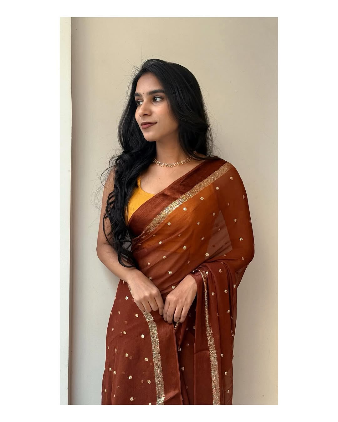 Elevate your ethnic wardrobe with this exquisite silk saree set, masterfully crafted to blend traditional elegance with contemporary appeal. The rich red and brown color palette creates a sophisticated foundation, while intricate golden zari polka dots add refined detailing throughout the fabric. The ornate zari border frames the saree beautifully, enhancing its drape and visual impact. Woven from premium silk, this saree offers a luxurious feel against the skin with a graceful flow that flatters every silhouette. Perfect for festive occasions, weddings, and celebrations, this versatile piece transitions seamlessly from day events to evening gatherings. The combination of traditional craftsmanship and quality materials ensures durability and timeless style.