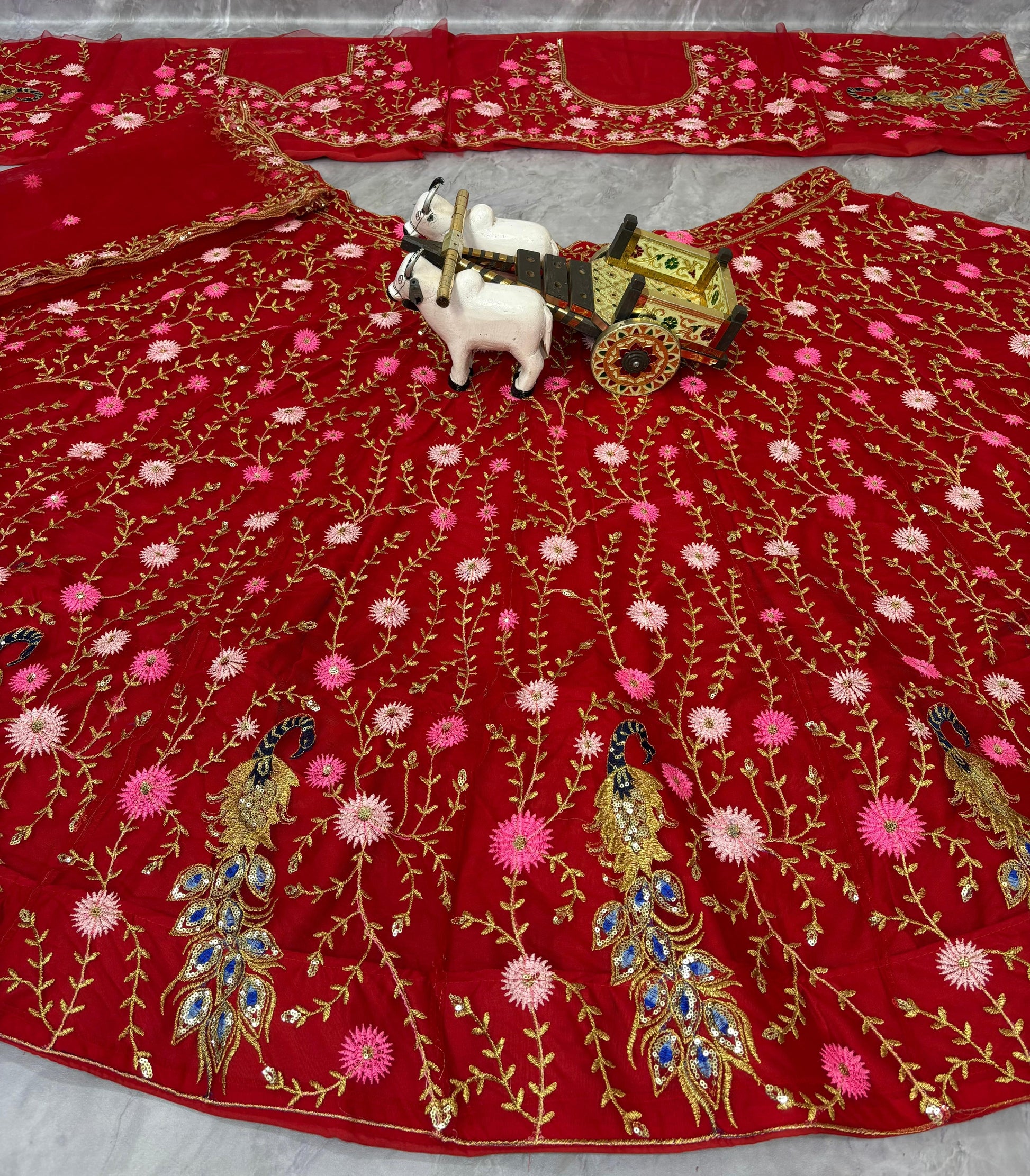 Elevate your festive wardrobe with this stunning red embroidered net lehenga choli ensemble. Crafted with intricate embroidery detailing, the sheer net fabric creates an ethereal silhouette perfect for weddings, engagements, and celebrations. The coordinated dupatta adds graceful movement and traditional elegance to your look. The rich red hue symbolizes auspiciousness while the delicate embroidery work showcases exceptional craftsmanship. Ideal for brides and guests seeking a sophisticated, statement-making outfit that balances contemporary design with timeless bridal aesthetics.